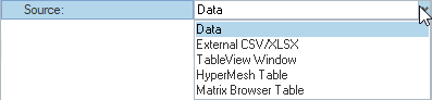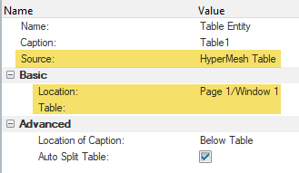 - セッションで既存のHyperMesh Tableコレクターからテーブルエンティティにデータをインポートします。LocationのHyperMeshページとウィンドウを選択し、Tableリストから目的のテーブルを選択します。