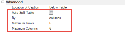 - テーブルを列方向または行方向に分割する場合に選択します。