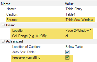 - セッションのTableViewウィンドウからテーブルエンティティにデータをインポートします。LocationでTableViewのページとウィンドウを選択し、セル範囲やその他の高度なオプションを定義します。