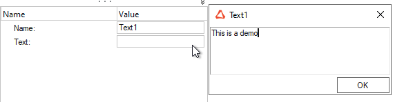 3. テキストアイテムの名前プロパティを変更でき、それがツリーでも更新されます。