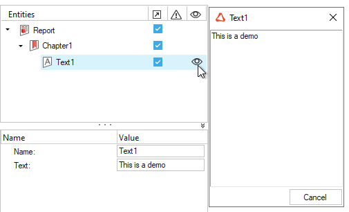 6. エンティティ内に入力されたテキストを確認するには、テキストエンティティに対し、Previewをクリックします。