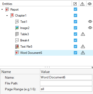 注: Wordファイルを選択すると、Wordエンティティ名が、選択されたファイル名と置き換えられます。