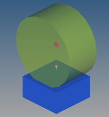 このモデルは、平坦なボックス上に配置された円筒からなります。この円筒は、ボックスの上面に平行な軸の周りを回転します。動的シミュレーションが実行されて、このシンプルなケースの接触挙動が評価されます。円筒が回転すると、メッシュ内の三角形が接触したり離れたりします。接触の運動特性に変化はありません。したがって、接触アルゴリズムによって一定の力が報告されることが予測されます。