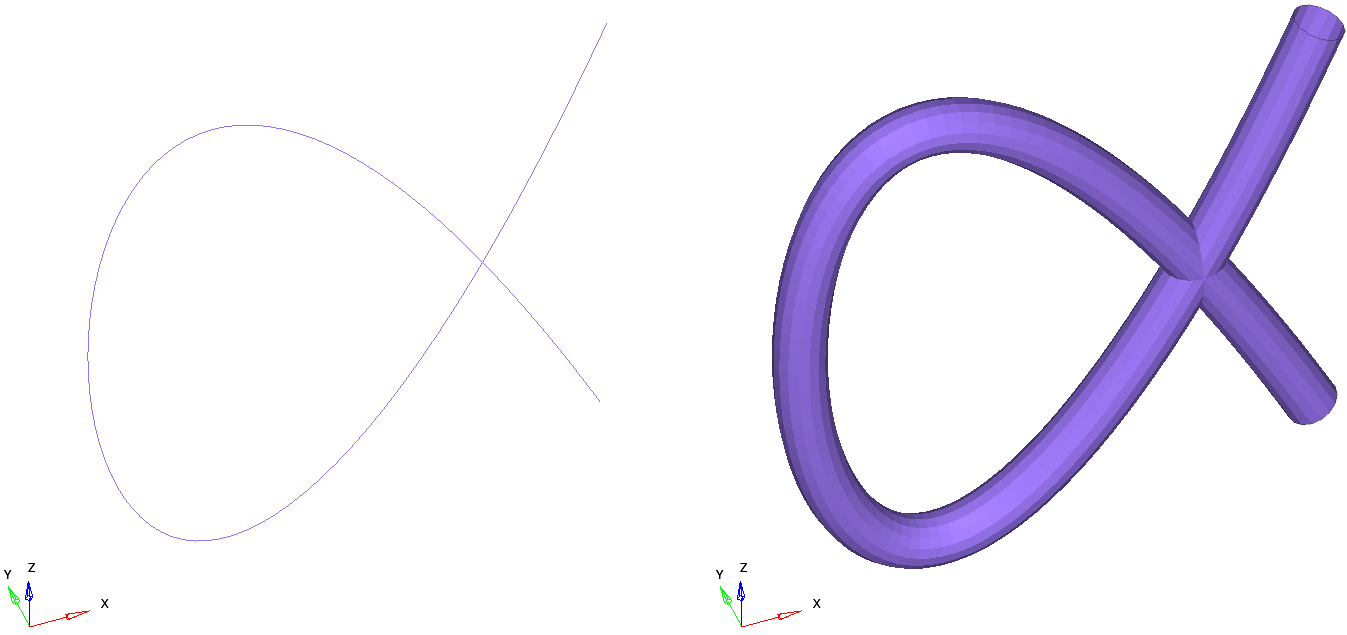 属性半径がDeformCurveグラフィックの場合、曲線はDeformCurveに沿って押し出された円の断面を持つチューブに変換されます。図 21. DeformCurveグラフィック