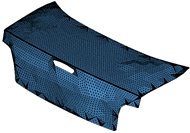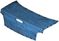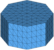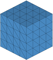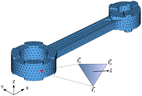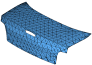TriaMeshグラフィックは、通常、頂点や辺を共有する三角形要素の集合として定義されます。このタイプのメッシュは、一般に、解析でCAD形状を表すために使用されます。三角形自体は2Dです。結合すると、3Dサーフェスを表すことができます。サーフェスには、フリーエッジがあってもなくてもかまいません。さらに、メッシュが隣接するソリッドを定義するという要件はありません。つまり、メッシュのすべてのパートを結合する必要はないということです。