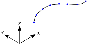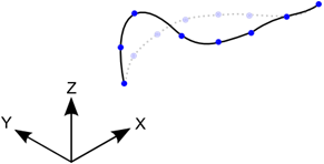 DeformCurveグラフィックタイプは、Reference_DeformCurve要素としてモデルで定義される変形可能曲線を表すために使用されます。グラフィックは、curve_idによって定義された曲線上の頂点をつなぐ直線セグメントの数で定義されます。このグラフィックは変形可能曲線を表すため、シミュレーションが進むにつれ、グラフィックは曲線と共に変形します。