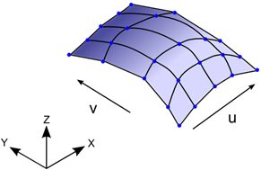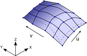 属性nseg_uおよびnseg_vは、サーフェスのそれぞれUおよびV方向に沿って曲線を描くために使用する必要のあるセグメントの数を定義します。この値が大きいほど、サーフェスは滑らかに見えます。
