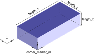 BoxDefinedFromCenterとBoxDefinedFromCornerのどちらのグラフィックも、そのx、y、z長さと、それぞれ中心、角のマーカーで定義されます。