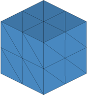 refinement_level属性は、TriaMeshグラフィックタイプで使用することもできます。精緻化レベルを1大きくすると、下の図に示すように、各三角形が4つの三角形に分割されます。註: TriaMeshグラフィックをそのまま使用する場合は、この属性を0に設定するか、これを定義しないでください。