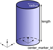 CylinderおよびFrustumグラフィックは、半径(Frustumの場合は上面と底面)、高さ、および形状の中心にあるマーカーで定義されます。