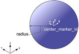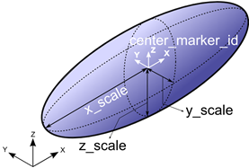 EllipsoidおよびSphereグラフィックタイプは、半径(Ellipsoidの場合はx、y、およびz方向、Sphereの場合は1つのみ)および形状の中心にあるマーカーで定義されます。