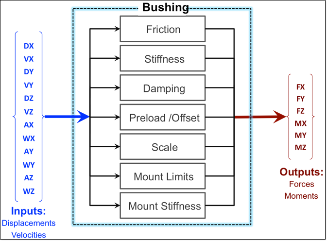 bushing such as stiffness and damping.
