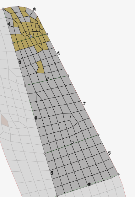 モデリングウィンドウで、4つのサーフェスを選択して、ガイドバーまたはマイクロダイアログからMeshをクリックします。