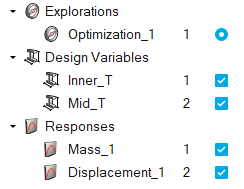 変位応答が更新されます。これで最適化は、2つの設計変数と2つの応答で構成されました。