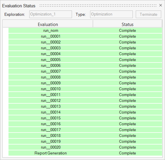 評価が完了すると、Evaluation Statusダイアログは次のようになります。図 17.