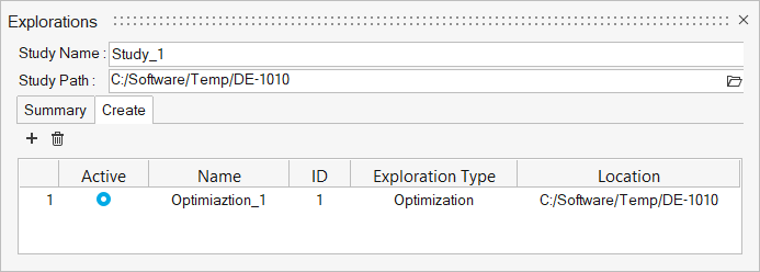 Design Explorerブラウザが開きます。新たに作成された最適化探索を確認できます。追加の探索エンティティもここに表示されます。