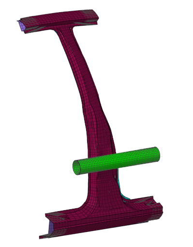 最適化に使用されるモデルは、自動車のフルモデルからのBピラーカットです。初速度は剛体円筒に対して横(Y)方向に適用されます。