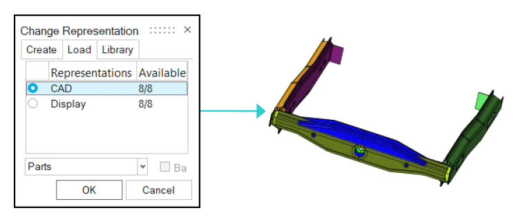 Change RepresentationダイアログでCADを選択し、OKをクリックします。