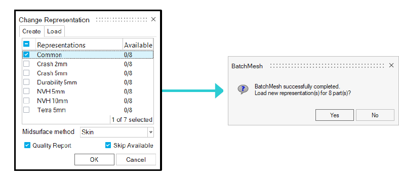 BatchMesherダイアログでYesをクリックし、新しいリプリゼンテーションを読み込みます。