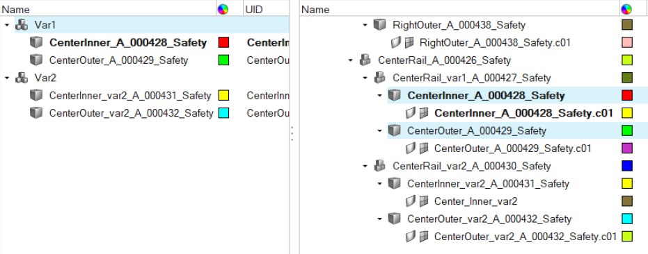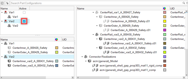 Var2に関連付けられていないパート、パートアセンブリ、コンポーネント、パートセットはすべて非アクティブになります。