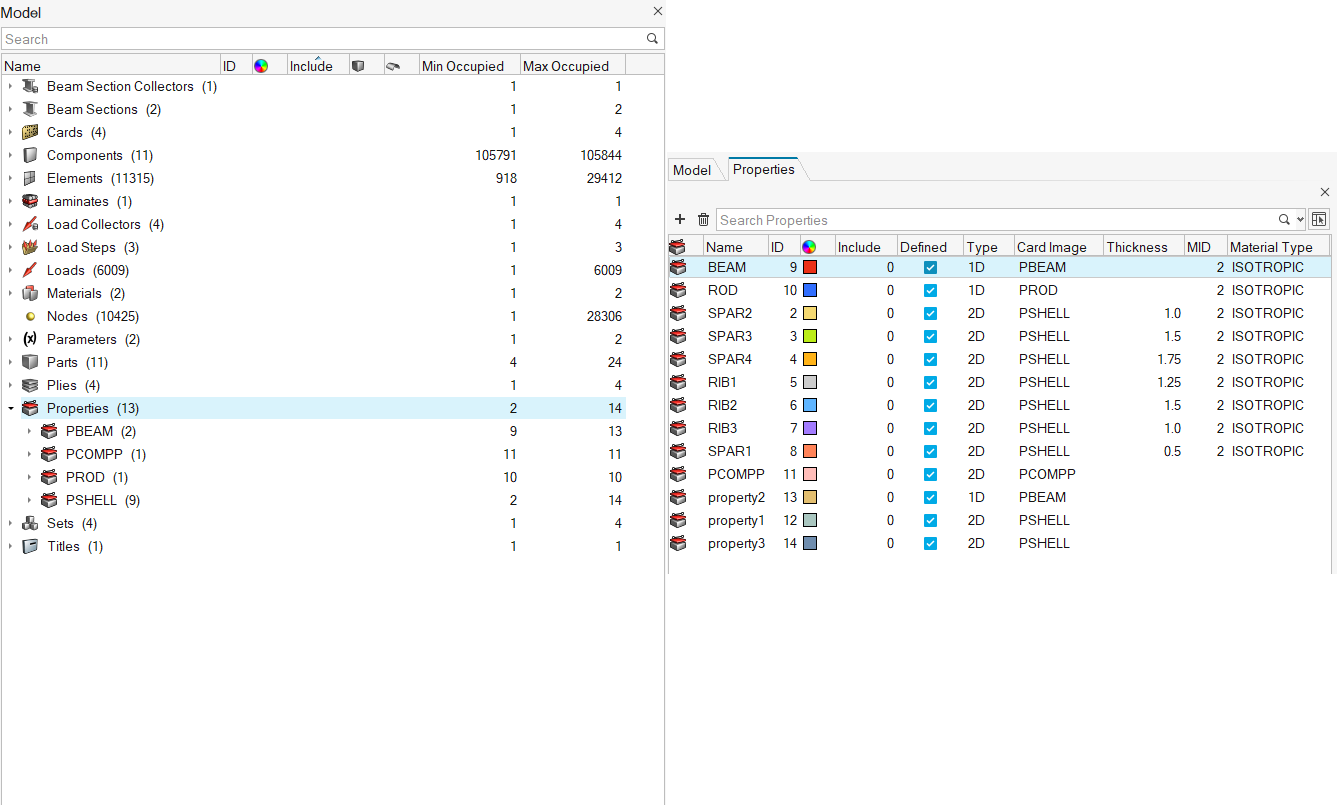 をクリックすると、デフォルトタイプを持つエンティティが作成されます。一方、Materials/MAT5のようなサブエンティティビューで