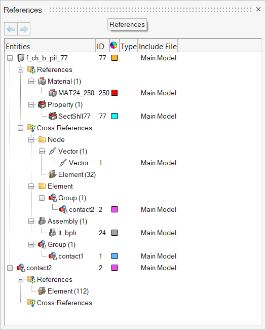 異なるエンティティ間の関係を理解するには、クロスリファレンス操作を起動するためにエンティティをダブルクリックします。