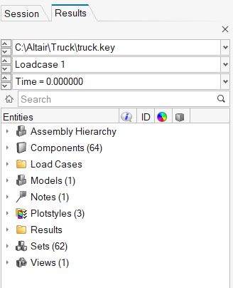 コンポーネントとシステムはツリー内の複数の場所に現れる場合があります。例えば、特定のコンポーネントはComponentsの下に、また特定のAssemblyまたはEntity Setのサブアイテムとしても表示されることがあります。適切である場合、エンティティの色と表示スタイルもResultsブラウザに表示されます。