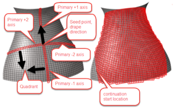• Yes – キネマティックドレーピング要素が、主方向メッシュラインから、伝搬可能な4つの象限のそれぞれに伝搬します。