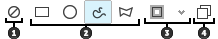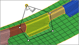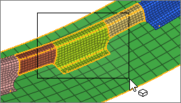 - Window Select Mode - ウィンドウ形状の内側、外側、または交差するエンティティを選択します。注: 交差は、要素、ライン、およびサーフェスに対して使用可能です。