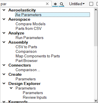 対応するツールが開きます。ソルバーカードを選択すると、新規カードが作成されます。ソルバーカードは、Keywords見出しの下にグループ化されます。ヒント: 検索ツールでソルバーカードを作成すると、モデルブラウザが表示され、新規に作成されたカードがどこに作成されたかを容易に確認することができます。