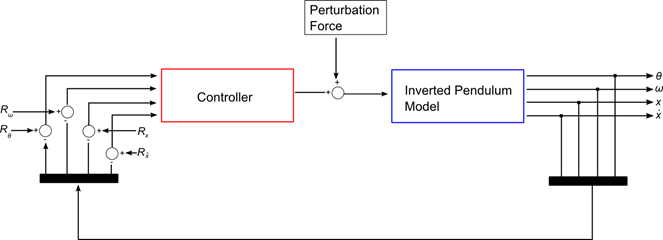 - Plant Output:振子の角変位と角速度; カートの並進変位と速度
