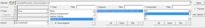 Output control force- (on Slider cart)、Y ComponentにFXを選択し、制御力のXコンポーネントをプロットします: