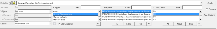 - ファイルブラウザアイコンをクリックし、InvertedPendulum_NoCosimulation.mrfファイルを読み込みます。これは、MotionSolve自体を実行することによって生成されたベースライン結果でした。