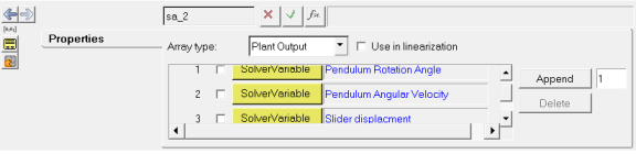 Control_PlantInputおよびControl_PlantOutput要素を使って指定された入力には、それぞれPINVAL()、POUVAL()関数を用いてアクセスすることが可能です。Control_PlantInputおよびControl_PlantOutputはソルバー変数のIDをリストするため、これらの入力および出力変数は、VARVAL()関数を用いてアクセスすることもできます。詳細については、MotionSolveユーザーズガイドをご参照ください。