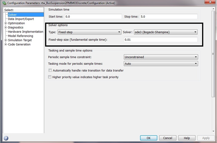 Simulink Coderによって使用されるソルバー内のコンフィギュレーションパラメータを指定します。これを行うには、下に示す