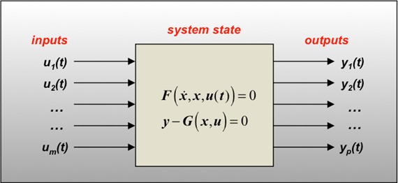 - 抽象的システムモデリング要素: 抽象的要素、主に微分方程式の類は、MBSモデル内の非標準的コンポーネントを表すために使用することができます。微分方程式は一般的に、動的サブシステムの挙動を捕捉するために使用されます。例えば、これらは、列車のエアスプリングの影響を表すことができます。線形および非線形状態-空間方程式と伝達関数も、一般的に使用が可能です。これらは、正しく定義された入力、出力、および内部状態でコンポーネントを表します。 図 8 は、MotionSolveでの抽象的システムを示しています。