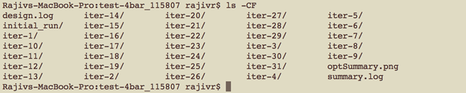 感度解析を実行すると、シミュレーションの結果がディレクトリに保存されます。次の4バーモデルのsummary.logファイルでは、31件の感度評価が実行されたことが示されています。