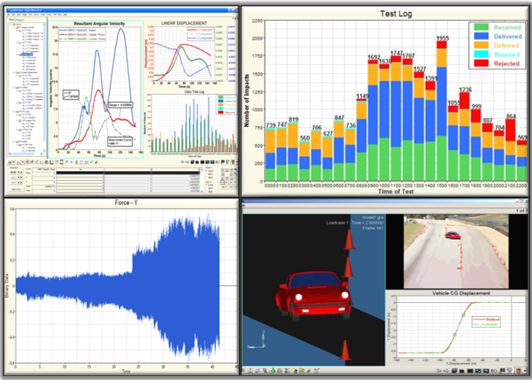 解析の実行後に、着目する対象の出力を確認し、システムの挙動を理解できます。多くの場合、出力を使用してシステムのグラフィカル表現をアニメーション表示することで、システム挙動に関する直感的な理解を深めることができます。市販のソリューションでは通常、結果を解釈するためのツール一式が提供されます(アニメーション、X-Yプロット、数値形式の出力、結果セットに対する算術演算など)。 図 1 は、現在のMBSソフトウェアで使用できるいくつかの一般的な可視化機能を示しています。図 1. MotionSolveから得られる一般的な出力とその可視化