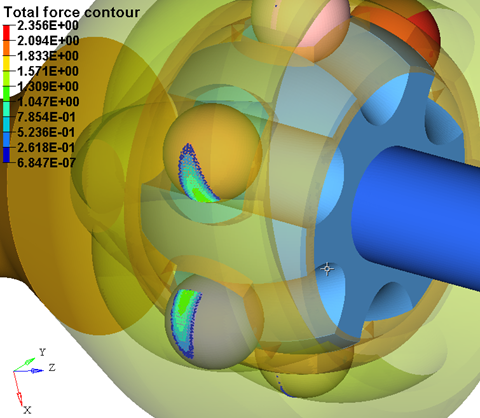 図 13. 等速ジョイント形状の全接触力のコンター