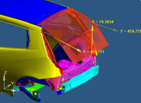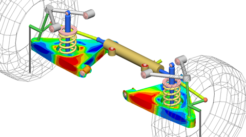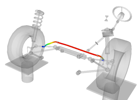 図 7. フロントサスペンションモデル内のNLFEスタビライザーバーの結果コンター