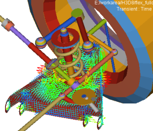 MotionSolveは、ユーザーが選択したシミュレーションタイプに基づき、アニメーション用として下記の2つのファイルタイプを作成します。H3Dファイルは静解析、擬似静解析、線形解析、および過渡シミュレーションの結果をアニメーション表示するために使用されます。H3Dファイルには、グラフィックスと結果情報の両方が含まれます。