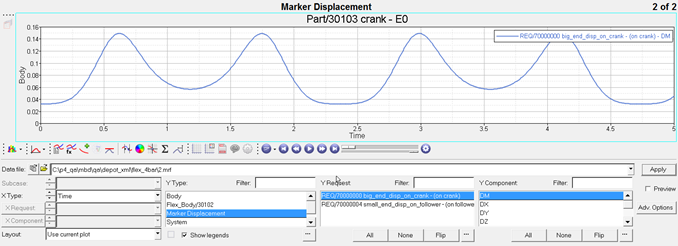 - プロットファイル(PLT): HyperGraphを使用してプロッティングできるASCIIファイルです。このファイルの主な目的は、荷重を変換してMotionSolveからNastranやOptiStructなどのFEAソフトウェアにエクスポートし、そこからMotionViewのLoad Summaryユーティリティを使って耐久性シミュレーションを行うことにあります。