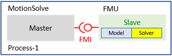 このタイプのFMUは、関数評価に通常必要な方程式とその他の数量を定義するのみです。FMUの応答は計算しません。その代わり、FMUの方程式がMotionSolveの解析方式に組み込まれており、MotionSolveはシミュレーションの進捗に伴うFMUの進展の時刻歴を同時に計算します。これは完全連成解析です。FMUには、常微分方程式、代数方程式、および離散差分方程式の任意の組み合わせを含めることができます。MotionSolveは3つすべてのタイプの方程式を処理できます。