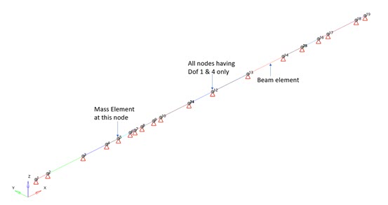 these systems. Here the critical speed of a rotor bearing system using OptiStruct is verified. 1図 1. 1D Rotor Model 図 2. 3D Representation of Beams
