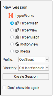 図 1. Create New Session This loads the user profile, including the appropriate template, menus,