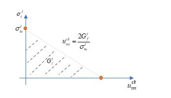 - 引張亀裂の場合、圧縮の場合の挙動と同じですが、引張亀裂のみが考慮されます。CRACKは、引張亀裂挙動(モードI)を定義します: