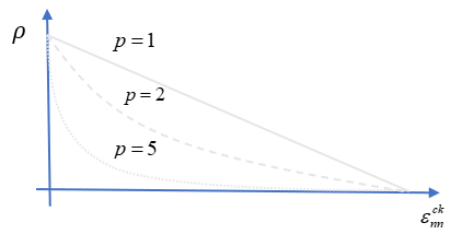 は、べき乗則の形で表されます。このべき乗則は、CRACK定義で選択した亀裂開口変数(STRN=