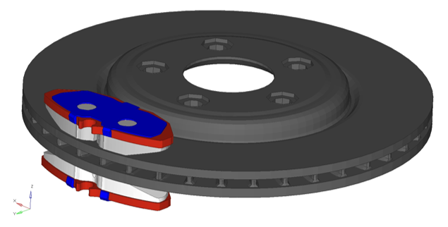 目的は、複素固有値解析へと続く非線形静解析をリスタートすることです。このFEAモデルの詳細については、OS-T:1371 ブレーキアセンブリのブレーキスキール解析をご参照ください。