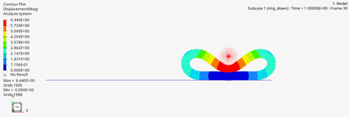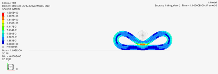 If the job was successful, new files are available in the directory where you chose to write the files. OptiStruct also reports error messages if any exist. The file rubber_ring.out can be opened in a text editor to find details regarding any errors. This file is written to the same directory as the .fem file.