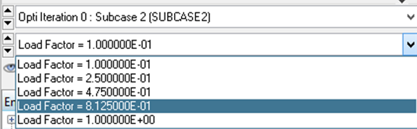 非線形最適化の間、各荷重インクリメントについての非線形結果は、各最適化反復計算について参照できます。